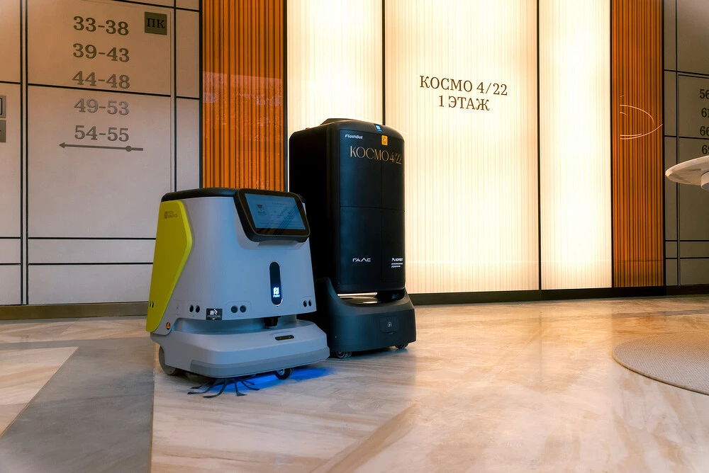 Принцип работы бесконтактной доставки максимально прост и удобен. Консьерж принимает заказ, связывается с жителем дома и загружает посылку в робота-доставщика Pudu, который самостоятельно вызывает лифт, поднимается на нужный этаж и доставляет её до двери квартиры. Специальные алгоритмы разработаны и для роботов-уборщиков: по заданию они самостоятельно добираются до этажей на лифтах для уборки общих пространств комплекса. Таким образом, роботизированные сервисы обеспечивают резидентам клубного дома удобство и приватность, исключая присутствие посторонних.