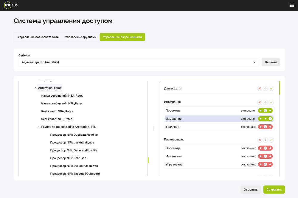 Например, у USEBUS AI-Code есть встроенные инструменты аудита: можно посмотреть, какие системы что делали, когда, какие действия совершали пользователи и к каким данным имели доступ. Кроме того, реализована модифицированная модель разграничения прав. Интеграционные цепочки представлены в виде витрины карточек, так что можно задать, какие из них конкретный пользователь может только просматривать, какие — редактировать, а какие — запускать.